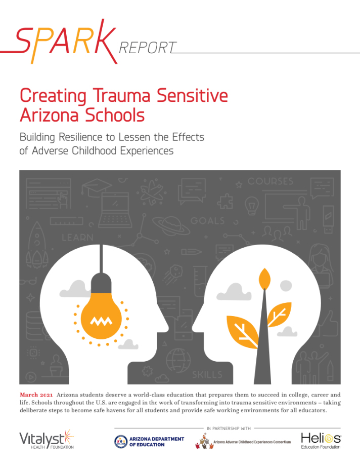 In Arizona and around the U.S., a growing number of school districts are transforming their schools into trauma sensitive environments and taking deliberate steps to become both safe havens for all students and safe working environments for all school staff. This report provides a glimpse into the current state of trauma informed policies and practices in schools throughout Arizona and presents recommendations to further advance supportive education environments. Information gathered from education leaders provide insights to promoting effective trauma sensitive schools in Arizona. What comes through clearly from those leading the way in Arizona is that this work hinges on recognizing and supporting all staff in focusing on developing relationships with students, families and the community. The areas of greatest need are increased opportunities and designated time to learn about trauma, cultivate meaningful relationships, develop and implement district and school- wide action plans, as well as increase support for staff well-being.